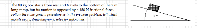 By the next unit (Unbalanced Forces Particle Model), they start using this tool to compare small changes in a situation. The honors class starts with a block sliding down a ramp with various descriptions given of the motion and amount of friction. The regular class starts with a block pushed then released along floors with varying amounts of friction.