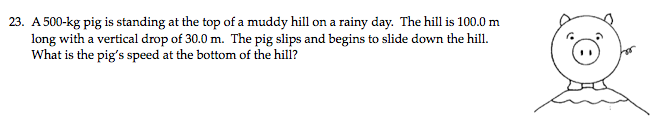 2. Go back to old units. Rework an old problem using newer models. Do they apply? Do they work as well? Better? (Example: go back to the momentum unit and see what happens when you analyze the collisions and explosions using conservation of energy. Go back to the unbalanced forces unit and use energy and/or momentum to analyze the problems again.) This strategy works especially well for the goal-less problems in the old units. Look at what you didn’t know you would be able to do, back in the day! If you have too many unknowns, try making up one more piece of information at a time.
