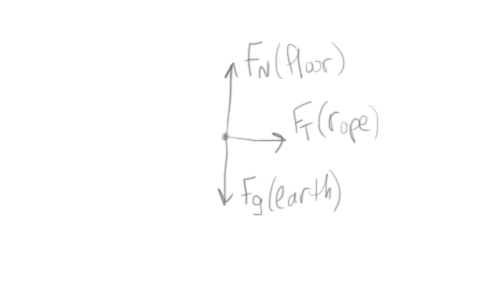 2) This is really common and persists for a while. Usually, though, you can get the kids to start explaining to each other using the tools that they’ve developed to think about the forces. Since our definition for normal force is that it is present when the atoms are being crunched, it is pretty easy to get them to talk themselves out of a persistent Fn by thinking about whether the person is still crunching the disc’s atoms (etc). I never use objects as subscripts for forces. (So Fhand would not work in our schema.) I get them to relate it back to what particular flavor of interaction is happening, then what object is exerting the force. Since our definition for force is “an interaction between two objects”, the force can only exist if there is a second object interacting with the disc. These ideas won’t disappear immediately, but you can help them talk themselves through specific situations. Since the Aristotle in their gut is a lot stronger than the infant Newton they are growing in their brains, they need these tools (diagrams, definitions of forces, etc) as a structure to help them think through each case.
