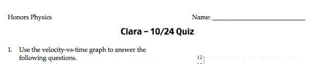 I must be doing something (many things?) wrong when it comes to authoring assessments … The one that I wrote for Uniform Acceleration took me about 6 hours to fiddle into a format that I could print and hand out. (yes I’m using msword …. ) just dealing with constructing graphs that make sense and have actual parabolas on them and lines that have workable slopes … is a tedious chore. Now I see that not only are you authoring tests much more efficiently … you are making multiple versions available … either I’m putting too much into mine … or my computer skills are HUGELY lacking.