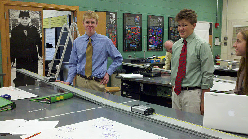 Some students (including another teacher who is a student in my class) take cart crashing data. And, yes, okay, the lab is getting to be a bit of a mess these days.
