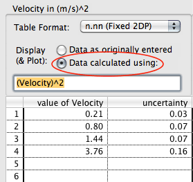 The other can be accessed by pressing = in the data table. It lets you specify that the item you want to plot wasn’t a quantity you measure, but should instead be calculated using quantities you did measure.