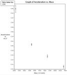 The ultimate goal is to end up with a linear graph (maybe even a directly proportional graph) so that we can state the relationship between the two quantities we measured in our experiment. The graph above looks like a parabola, so our suspicion is that (acceleration is directly proportional to speed squared). If we’re right, then when we graph acceleration on the vertical axis and speed squared on the horizontal axis, we should get a linear graph that goes through the origin.