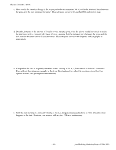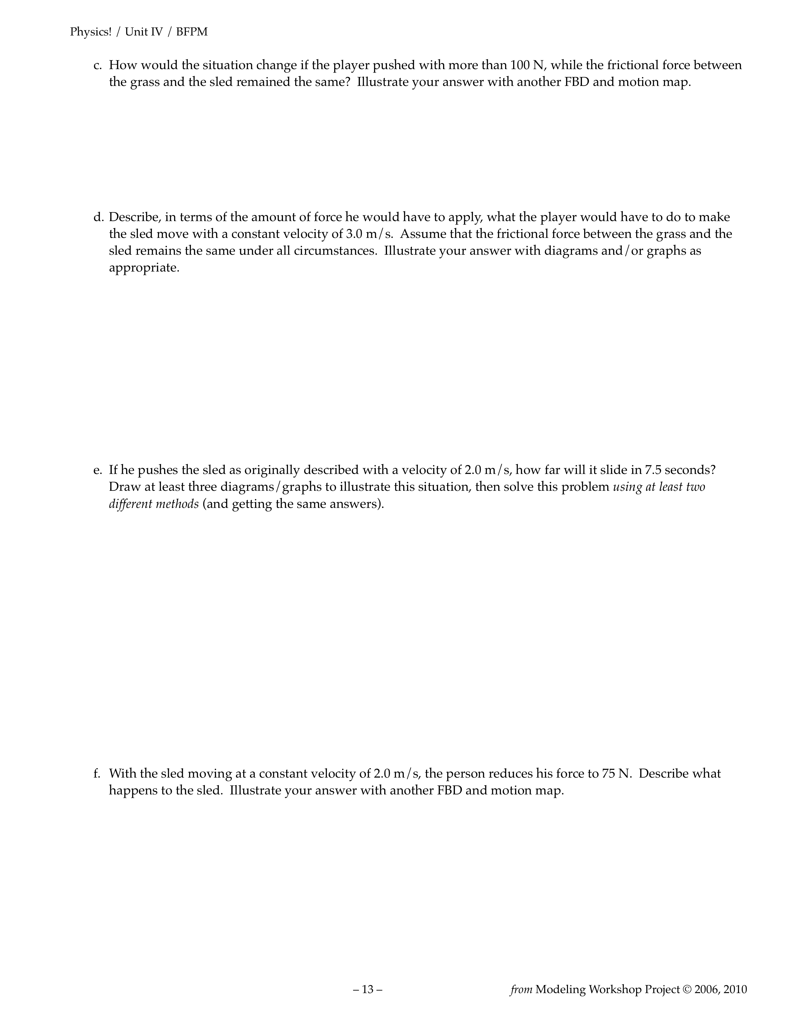 While they are first encountering the problem on paper, most groups will come to the same conclusion (just push with 3/2 as much constant force, duh), and they’ll get there quickly and without much discussion. A couple of groups will be really bothered by it, as they have two ideas that both seem like they must be true. On the one hand, “push with 150 N” seems like it has to be the answer. On the other hand, don’t the forces have to be balanced for the sled to move at a constant velocity?