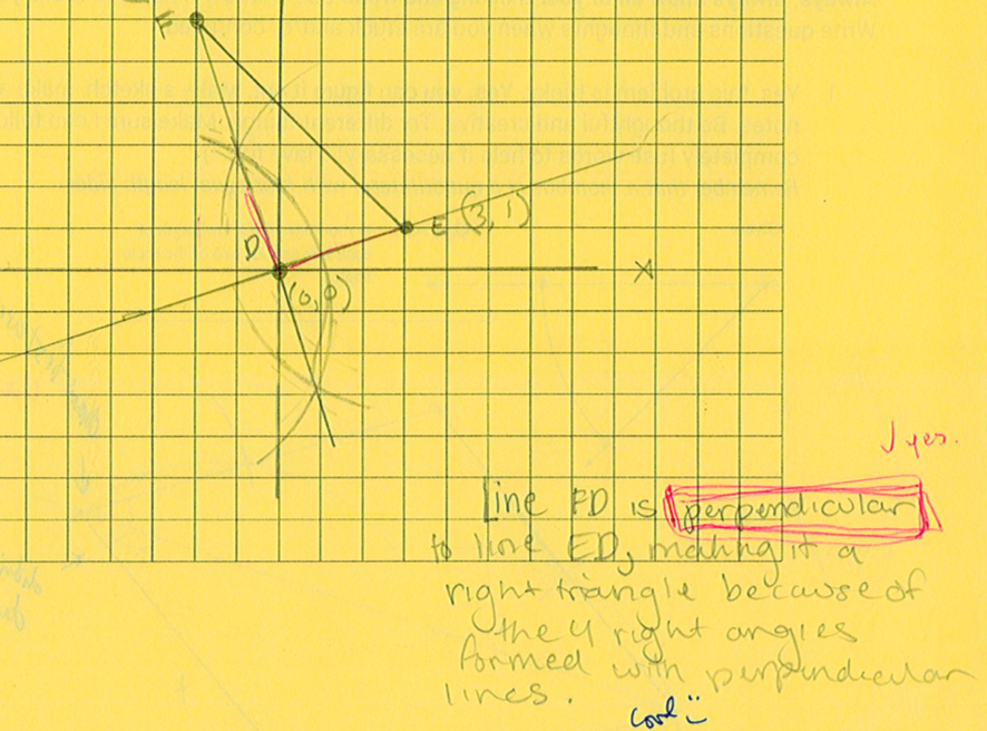 And here’s a kid who created a perpendicular line to one of the legs and showed that it was on top of the other leg.