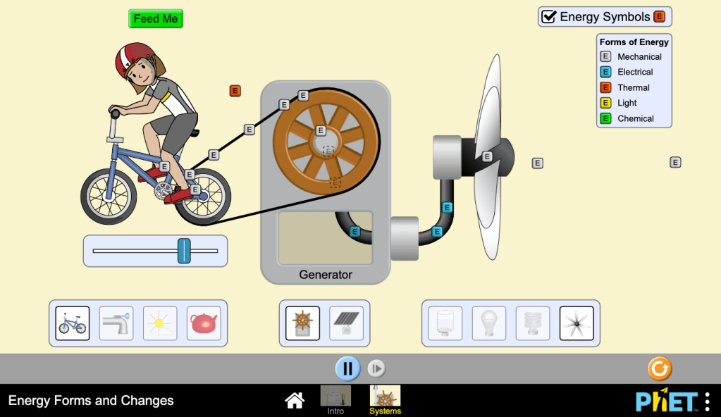 In the unit, they practice these diagrams by working on problems that also challenge them a bit—and which advance our storyline toward thinking about power plants. We use two situations from the Energy Forms & Changes PhET, so the students also get to play with the simulation (which they love) along the way.