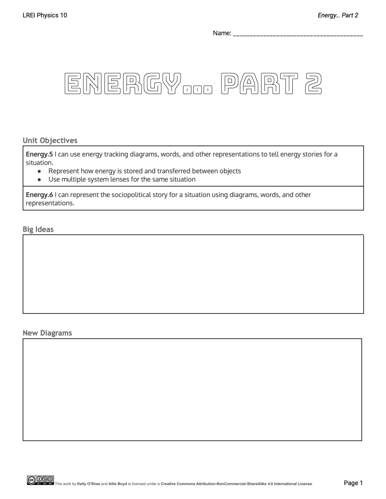 This Energy… Part 2 unit is meant to come after a typical conservation of energy unit. It leads to a project where students get to examine energy stories (along with entwined associated sociopolitical stories) that are personal to them. I will write about the project in detail in a separate post. This post gives details about the unit.