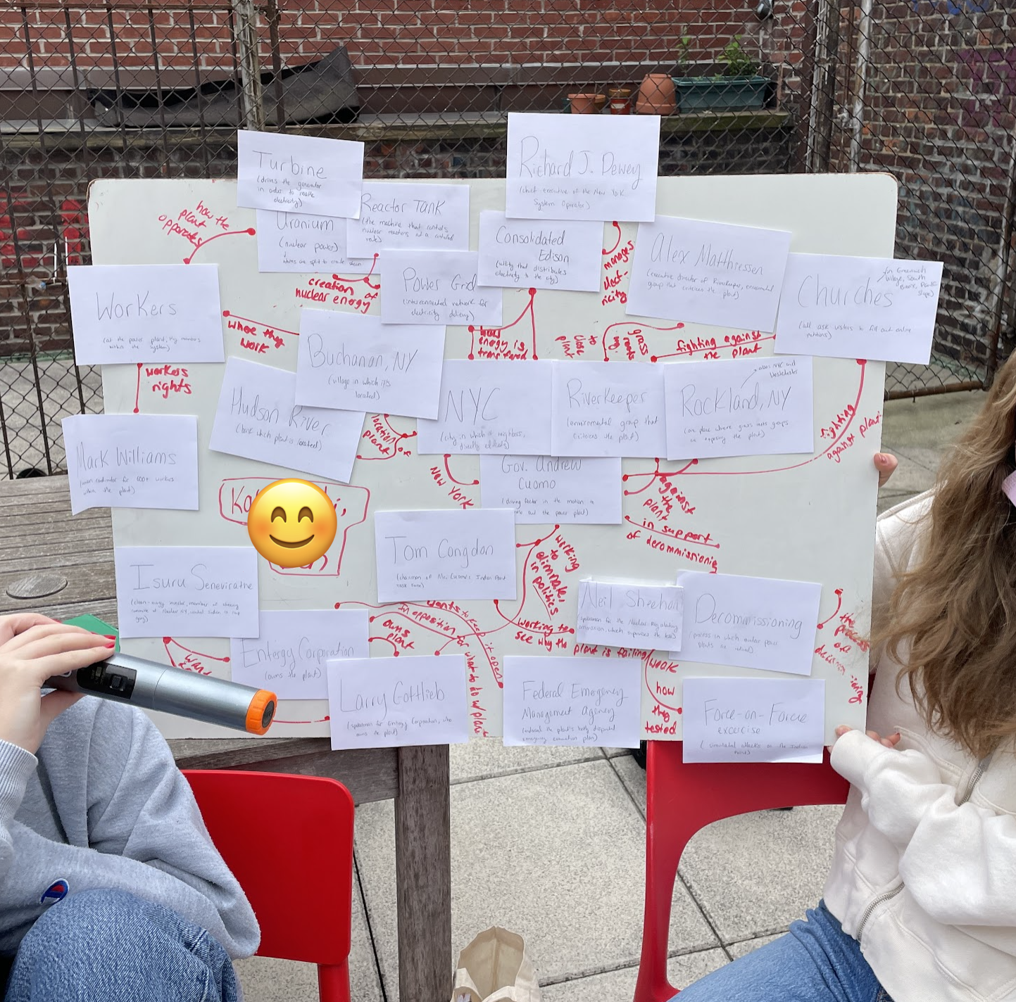 We focused on a specific, local power plant—Indian Point Nuclear Power Plant—which shut down a year ago. Doing this activity together in groups also prepared them to create their own diagrams in the project which followed this unit.